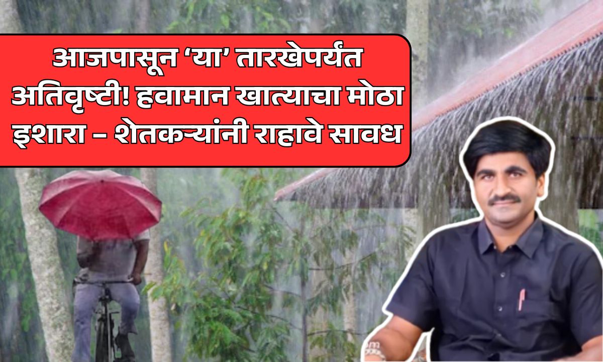आजपासून ‘या’ तारखेपर्यंत अतिवृष्टी! हवामान खात्याचा मोठा इशारा – शेतकऱ्यांनी राहावे सावध
