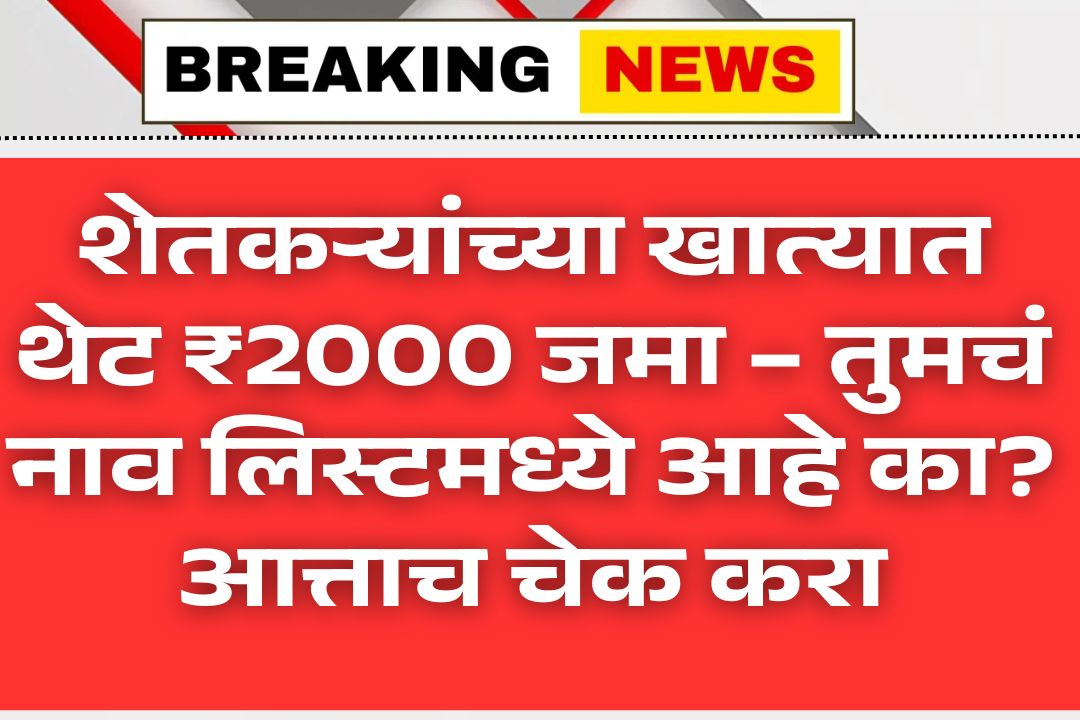 शेतकऱ्यांच्या खात्यात थेट ₹2000 जमा – तुमचं नाव लिस्टमध्ये आहे का? आत्ताच चेक करा