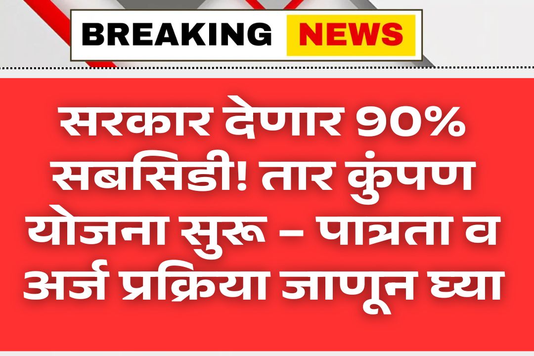 सरकार देणार 90% सबसिडी! तार कुंपण योजना सुरू – पात्रता व अर्ज प्रक्रिया जाणून घ्या